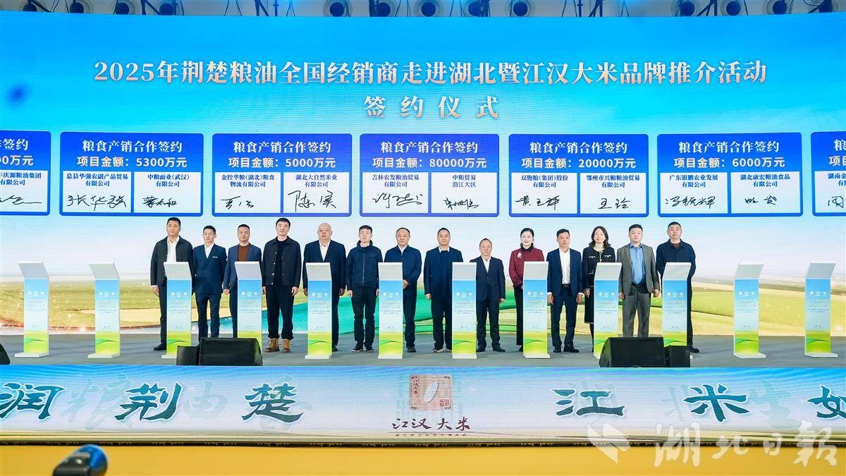 湖北日报讯(记者陈莉霖、通讯员王阳峥)12月12日,在第24届荆楚粮油精品展示交易会上,现场达成35亿余元签约,敲定20多个重点产销合作项目。其中,湖北康宏粮油有限公司与广东银鹏农业发展有限公司的成功签约,是湖北省持续打造“江汉大米”区域公用品牌的成效体现。